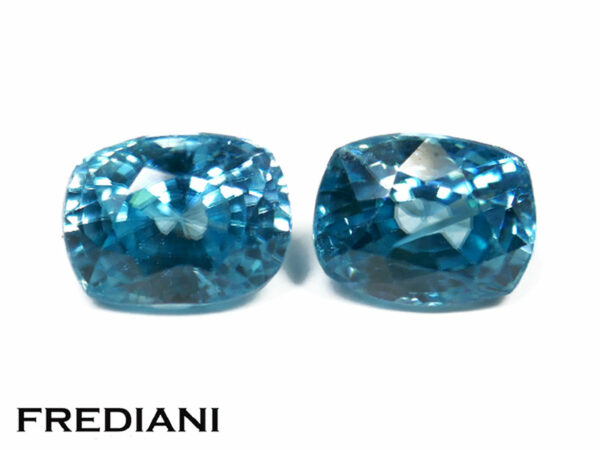 Appairage de zircons bleus coussins 77×60 de 4.95 carats.