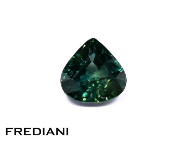 Saphir vert poire 73×72 de 1.55 carat en provenance des gisements de saphirs de Ban Ka Cha près de Chantaburi à l’est de la Thaïlande.
