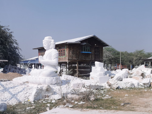 Les habitants se sont spécialisés dans la sculpture de ce marbre pour en faire des statues pour décorer les temples bouddhistes au-delà de la Birmanie